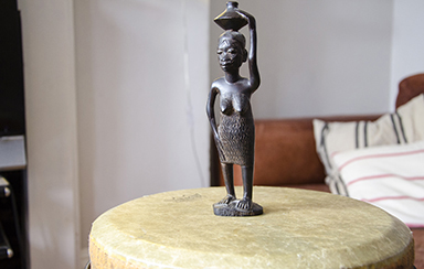 And then when I went back, I asked my mother whether I could take a couple of statues with me. So I took this one and a bigger one that’s on the mantlepiece. And eh, yes, I suppose there’s a kind of connection, they’re my connection to Ireland, in a way.