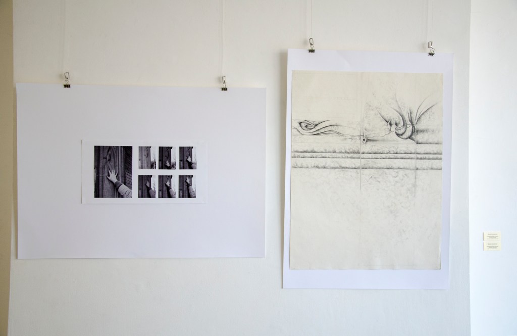 Ilona Balaga’s drawings and collages reference the fear of change and the fear of the future.