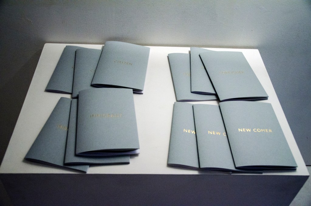 At the back of the lower floor, in an alcove is Naifei Wei’s Word Chain, twelve bound books embossed with various words in gold lettering. In the participatory work, participants are asked to describe a word or to summarise a paragraph. The first participant writes a few sentences to describe the starting word; then another participant summarises sentences from the last person into one word without knowing the original word; the word from the second participant is then described in sentences by the third participant; and finally the sentences are summarised into a word by the fourth participant. Like “Chinese Whisper,” the game goes on and on— from a word to descriptions, from descriptions to a word, through which the matter of translation and interpretation of certain notions that are crucial to our current globalised society is explored.
